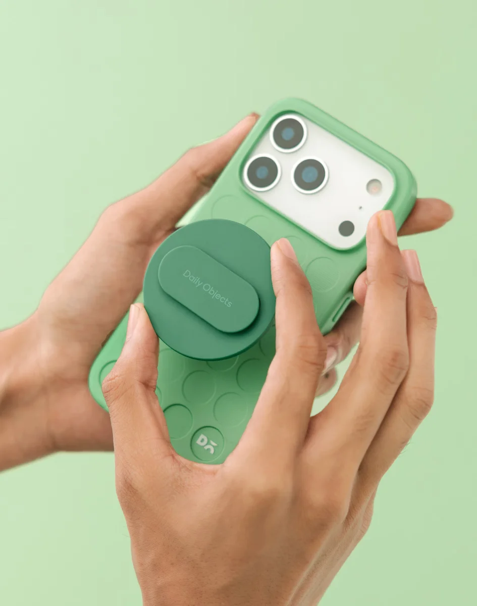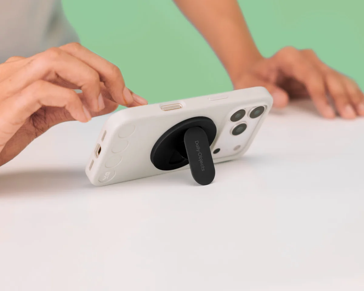 Grip + kickstand with card storage and MagSafe‑style attachment....
